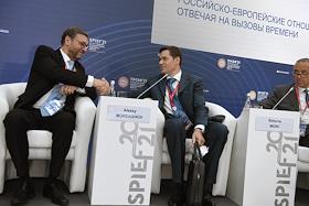 XXIV Петербургский международный экономический форум (ПМЭФ) 2021 прошел в конгрессно-выставочном центре "Экспофорум". Чрезвычайный и полномочный посол, постоянный представитель России при Европейском союзе Владимир Чижов во время сессии "Российско-европейские отношения: отвечая на вызовы времени".