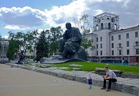 Виды Минска. Памятник белорусскому писателю Якубу Коласу на площади Якуба Коласа.