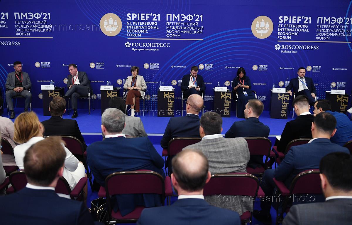 XXIV Петербургский международный экономический форум (ПМЭФ) 2021 прошел в конгрессно-выставочном центре "Экспофорум". Жанровая фотография.