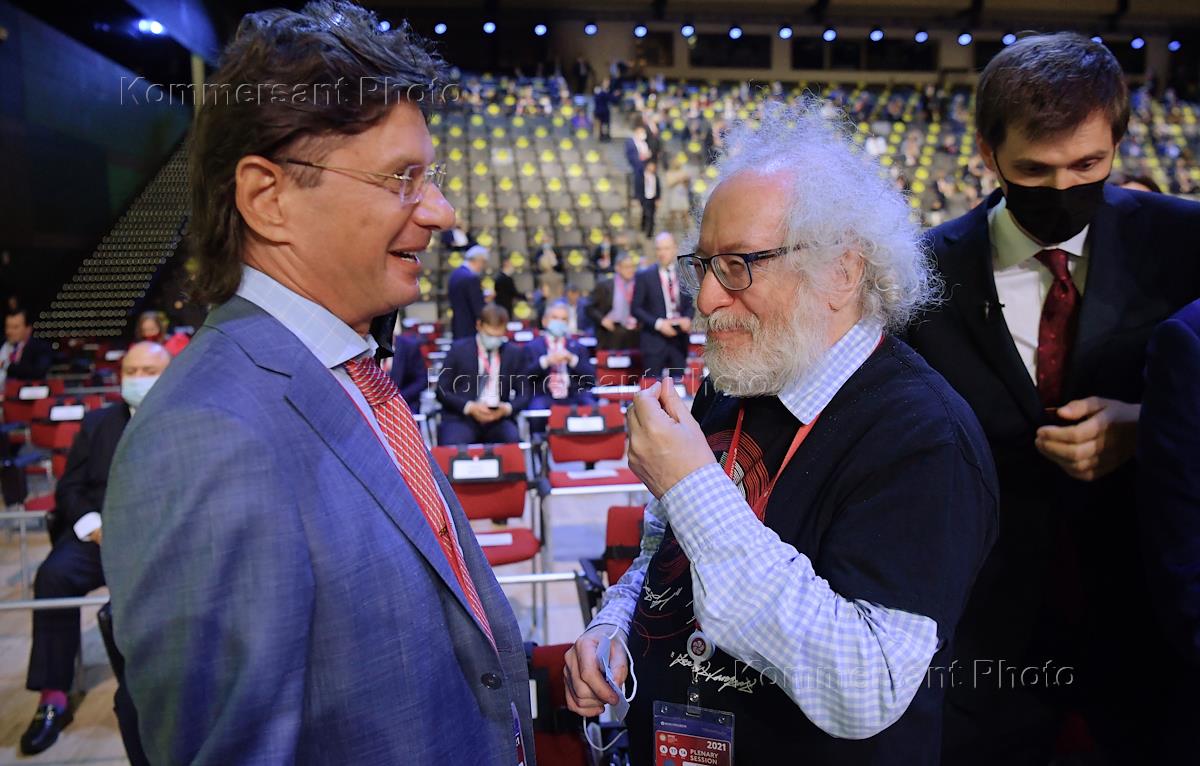 XXIV Петербургский международный экономический форум (ПМЭФ) 2021 прошел в конгрессно-выставочном центре "Экспофорум". Президент Евроазиатского еврейского конгресса (ЕАЕК) Александр Машкевич (справа) перед началом пленарного заседания форума.