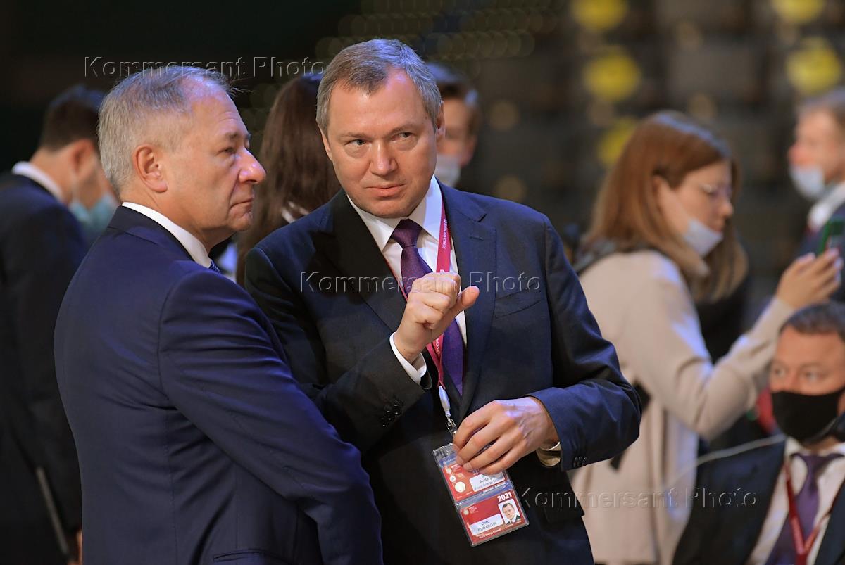 XXIV Петербургский международный экономический форум (ПМЭФ) 2021 прошел в конгрессно-выставочном центре "Экспофорум". Полномочный представитель президента России в Сибирском федеральном округе (СФО) Сергей Меняйло (справа) на форуме.