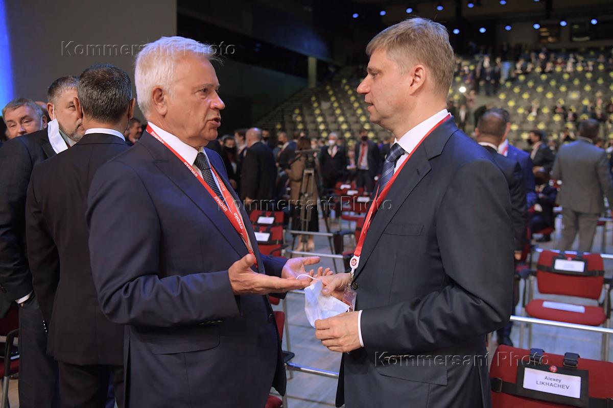 The XXIV St. Petersburg International Economic Forum (SPIEF) 2021 was held at the Expoforum Convention and Exhibition Center. General Director - Chairman of the Management Board of Russian Railways Oleg Belozerov (right) and Chairman of the Management Board of PJSC Lukoil Vagit Alekperov (left) before the start of the plenary meeting.