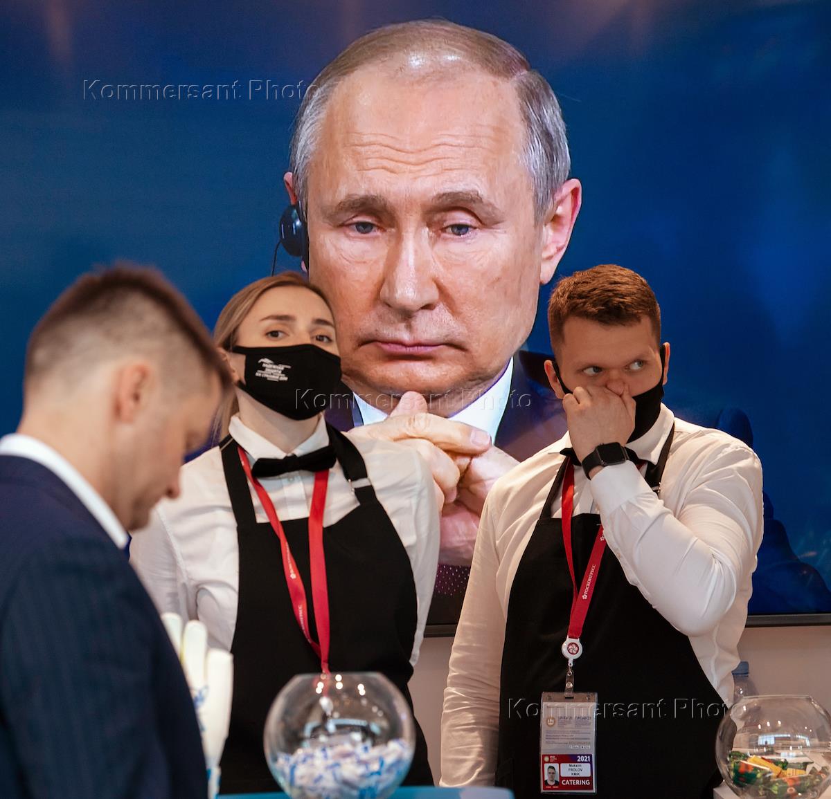XXIV Петербургский международный экономический форум (ПМЭФ) 2021 прошел в конгрессно-выставочном центре "Экспофорум". Жанровая фотография.