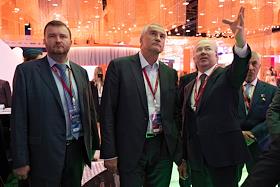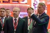 XXIV Петербургский международный экономический форум (ПМЭФ) 2021 прошел в конгрессно-выставочном центре "Экспофорум". Премьер-министр Правительства Республики Башкортостан Андрей Назаров (в центре) и глава Республики Башкортостан Радий Хабиров (справа) на стенде Республики Башкортостан.