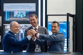XXIV Петербургский международный экономический форум (ПМЭФ) 2021 прошел в конгрессно-выставочном центре "Экспофорум". Глава корпорации Развития Республики Крым Дмитрий Ворона (слева), глава Республики Крым Сергей Аксенов (в центре) и премьер-министр правительства Республики Башкортостан Андрей Назаров (справа) во время работы форума.