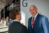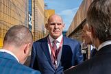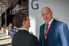 XXIV Петербургский международный экономический форум (ПМЭФ) 2021 прошел в конгрессно-выставочном центре "Экспофорум". Представитель в Совете Федерации России от законодательного (представительного) органа государственной власти Новосибирской области Александр Карелин (в центре) во время работы форума.