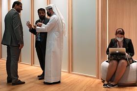 XXIV Петербургский международный экономический форум (ПМЭФ) 2021 прошел в конгрессно-выставочном центре "Экспофорум". Жанровая фотография. Участники форума за работой.