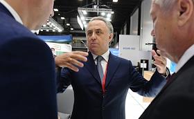 XXIV Петербургский международный экономический форум (ПМЭФ) 2021 прошел в конгрессно-выставочном центре "Экспофорум". Генеральный директор АО "ДОМ.РФ" Виталий Мутко во время работы на стенде "ДОМ.РФ".