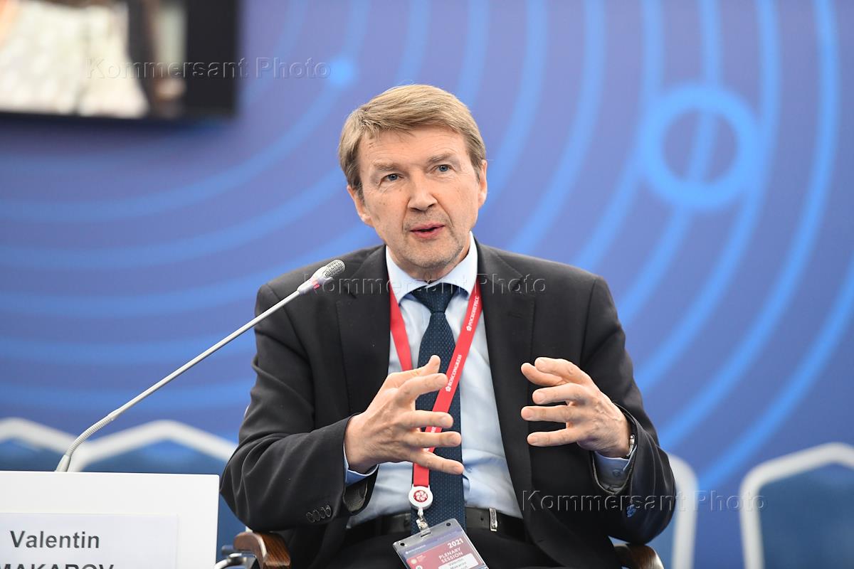 XXIV Петербургский международный экономический форум (ПМЭФ) 2021 прошел в конгрессно-выставочном центре "Экспофорум". Сессия "Экспорт технологий и образования. Возможно ли сформировать российское научно-техническое пространство".Президент НП "РУССОФТ" Валентин Макаров во время работы сессии.