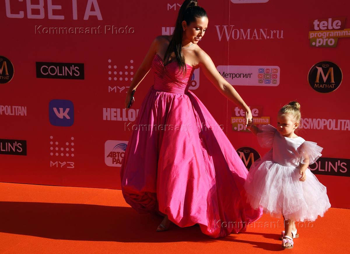 18-я ежегодная национальная телевизионная премия в области популярной музыки "Премия МУЗ-ТВ 20/21. Начало света" во дворце спорта "Мегаспорт". Певица Нюша (Анна Шурочкина) с дочкой на церемонии.