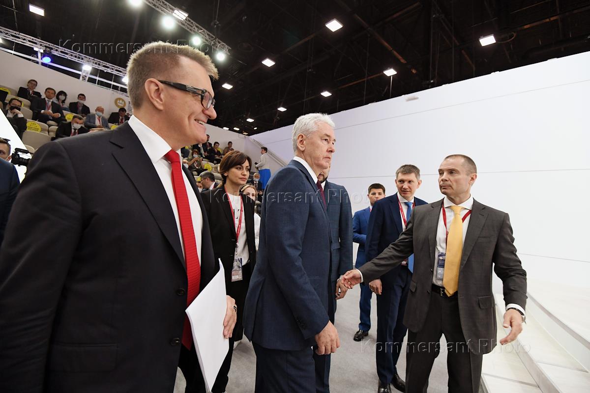 XXIV Петербургский международный экономический форум (ПМЭФ) 2021 прошел в конгрессно-выставочном центре "Экспофорум". Сессия "Качественный рост: развитие агломераций в ответ на глобальные вызовы". Мэр Москвы Сергей Собянин (в центре) перед началом сессии.