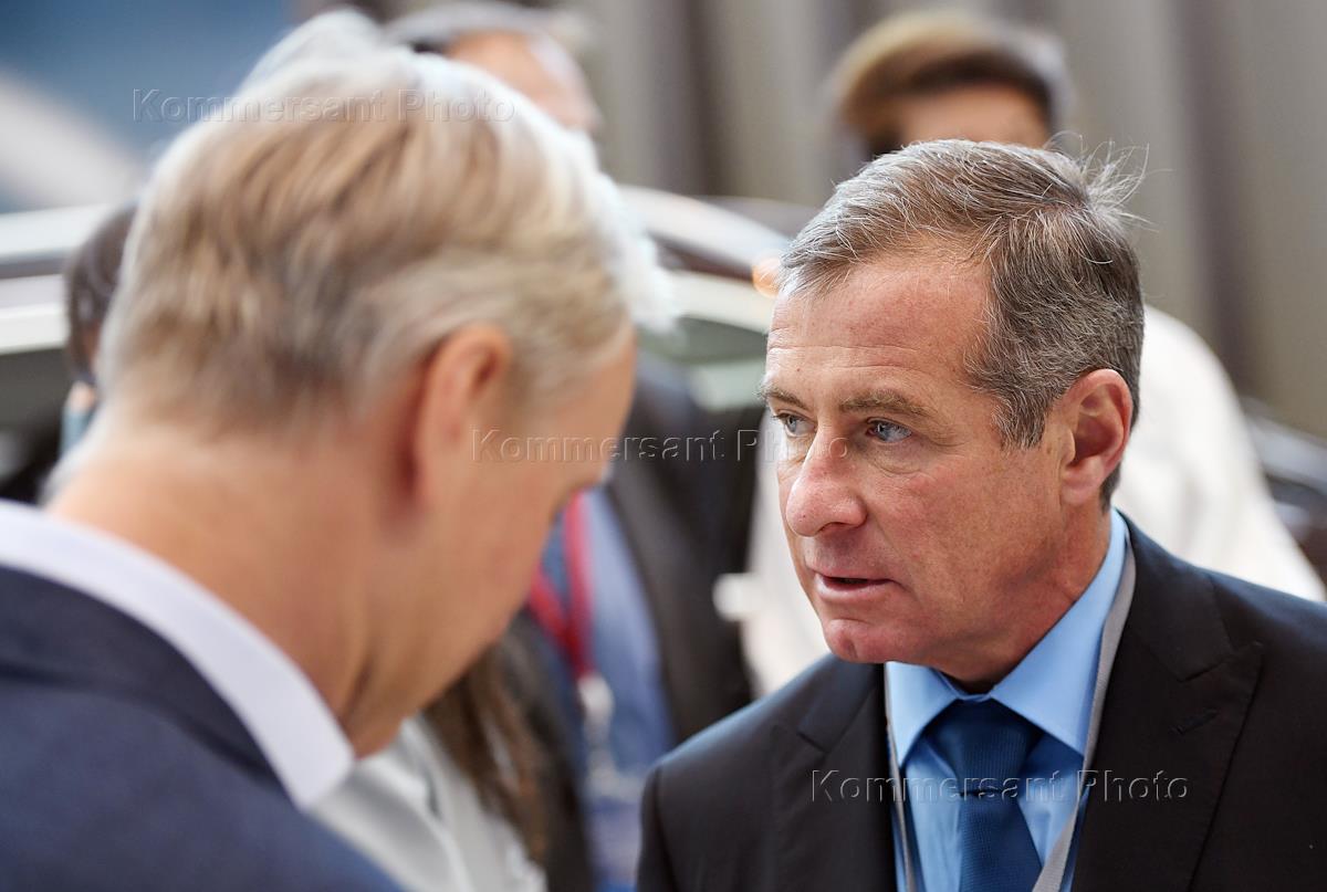 XXIV Петербургский международный экономический форум (ПМЭФ) 2021 прошел в конгрессно-выставочном центре "Экспофорум". Председатель совета директоров группы компаний ЕСН Григорий Березкин (справа) на форуме.