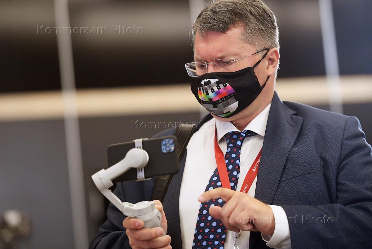 XXIV Петербургский международный экономический форум (ПМЭФ) 2021 прошел в конгрессно-выставочном центре "Экспофорум". Генеральный директор Государственной корпорации по космической деятельности "Роскосмос" Дмитрий Рогозин (в центре) на форуме.