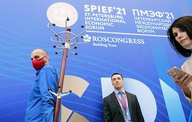 XXIV Петербургский международный экономический форум (ПМЭФ) 2021 прошел в конгрессно-выставочном центре "Экспофорум". Жанровая фотография.