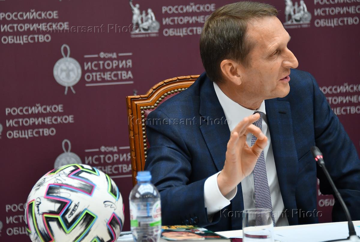 Заседание "круглого стола", посвященное истории отечественного футбола в Доме Российского исторического общества (РИО). Председатель РИО Сергей Нарышкин во время заседания.