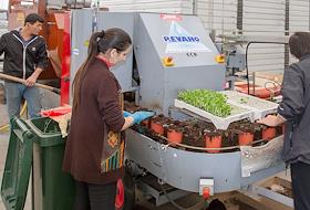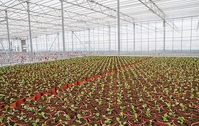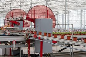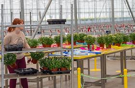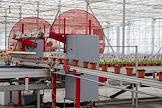 Работа тепличного хозяйства агрохолдинга "Московский". Жанровая фотография. Конвейер по выращиванию цветов в тепличном хозяйстве.