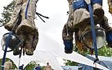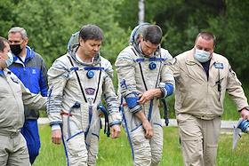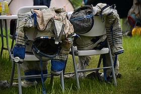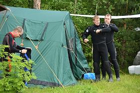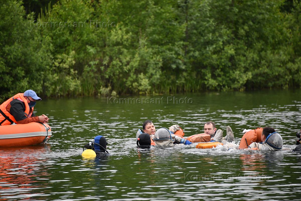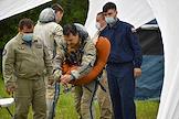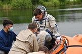 Тренировка экипажа МКС-69 по действиям после посадки спускаемого аппарата на водную поверхность на базе Ногинского Спасательного Центра МЧС России и при содействии сотрудников Министерства по чрезвычайным ситуациям. Космонавт Николай Чуб (справа) во время тренировки.