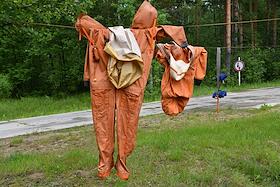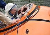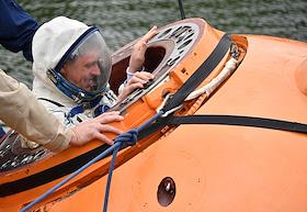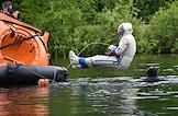 Тренировка экипажа МКС-69 по действиям после посадки спускаемого аппарата на водную поверхность на базе Ногинского Спасательного Центра МЧС России и при содействии сотрудников Министерства по чрезвычайным ситуациям. Космонавт Андрей Федяев во время тренировки.