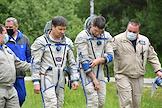 Тренировка экипажа МКС-69 по действиям после посадки спускаемого аппарата на водную поверхность на базе Ногинского Спасательного Центра МЧС России и при содействии сотрудников Министерства по чрезвычайным ситуациям. Слева направо: космонавт Андрей Федяев, инструктор-космонавт-испытатель - заместитель командира отряда космонавтов ФГБУ "Научно-исследовательский испытательный центр подготовки космонавтов имени Ю.А.Гагарина" Олег Кононенко и космонавт Николай Чуб во время тренировки.