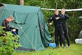 Тренировка экипажа МКС-69 по действиям после посадки спускаемого аппарата на водную поверхность на базе Ногинского Спасательного Центра МЧС России и при содействии сотрудников Министерства по чрезвычайным ситуациям. Жанровая фотография. Сотрудник МЧС России у КПП.