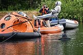 Тренировка экипажа МКС-69 по действиям после посадки спускаемого аппарата на водную поверхность на базе Ногинского Спасательного Центра МЧС России и при содействии сотрудников Министерства по чрезвычайным ситуациям. Инструктор-космонавт-испытатель - заместитель командира отряда космонавтов ФГБУ "Научно-исследовательский испытательный центр подготовки космонавтов имени Ю.А.Гагарина" Олег Кононенко (в центре) и космонавт Николай Чуб (справа) во время тренировки.