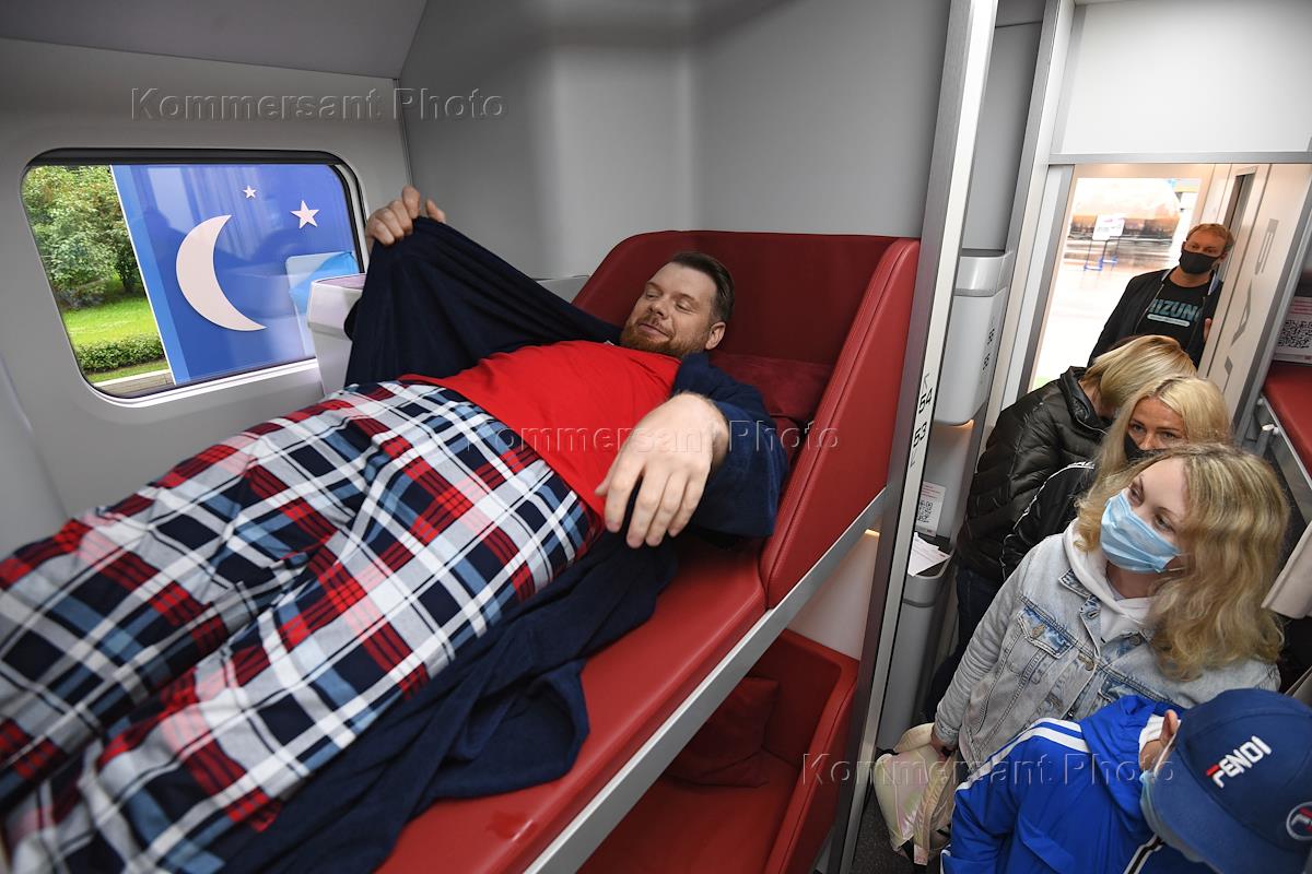 Презентация макета нового капсульного пассажирского вагона компании "РЖД" в рамках российского туристического форума "Путешествуй" на ВДНХ.