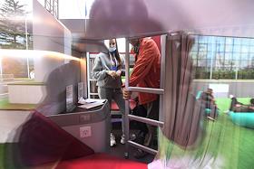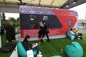 Презентация макета нового капсульного пассажирского вагона компании "РЖД" в рамках российского туристического форума "Путешествуй" на ВДНХ. Жанровая фотография.