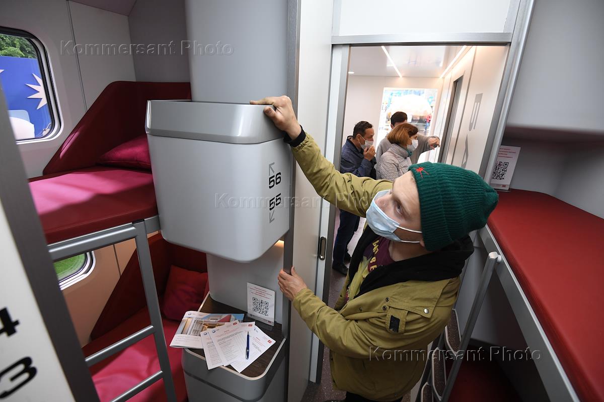 Презентация макета нового капсульного пассажирского вагона компании "РЖД" в рамках российского туристического форума "Путешествуй" на ВДНХ.