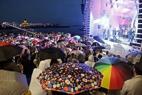 Празднование Дня России. Концерт "Хора Турецкого" на Нижневолжской набережной. Зрители во время концерта.