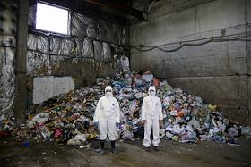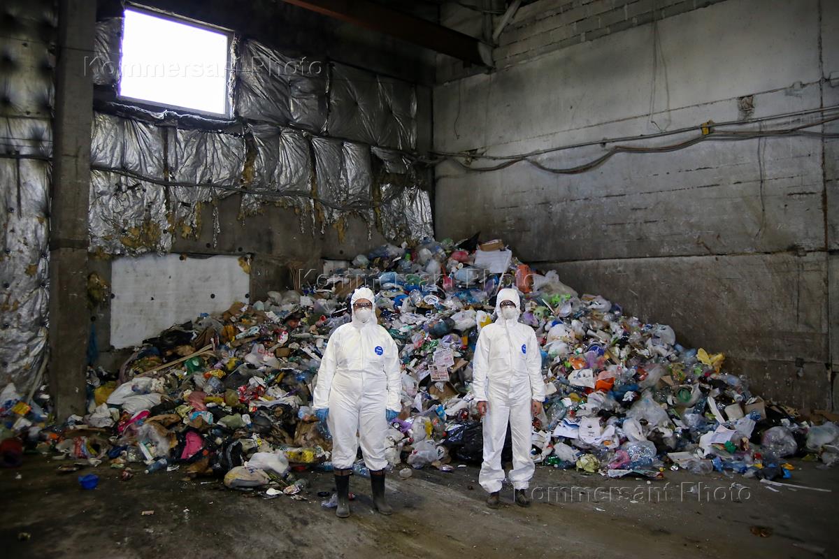 Проект "Ноль отходов" экологической организации Greenpeace (Гринпис) Росиии. Участники проекта во время посещения мусоросортировочной станции в рамках проекта.