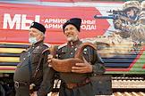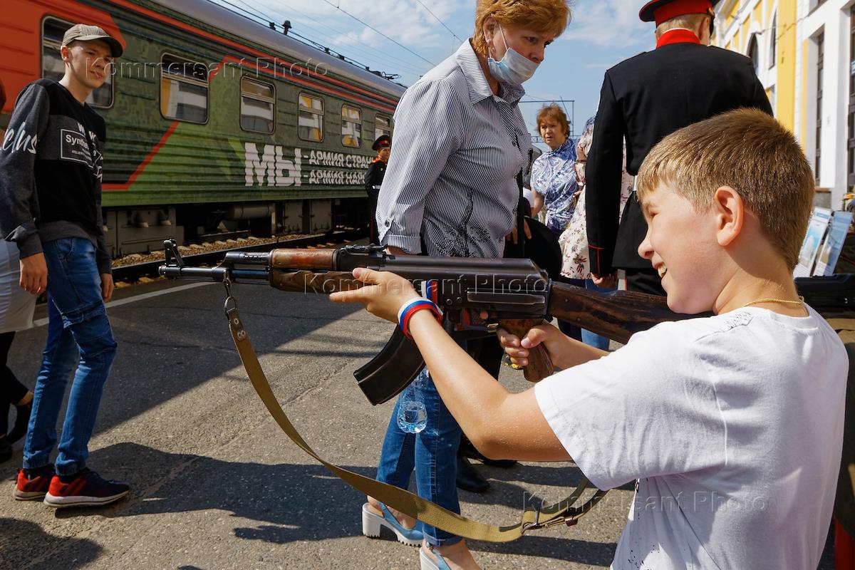 Церемония встречи агитационного поезда Министерства обороны России "Мы - армия страны, мы - армия народа", на железнодорожной станции Томск-1. Жанровая фотография.