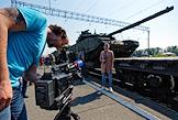 Церемония встречи агитационного поезда Министерства обороны России "Мы - армия страны, мы - армия народа", на железнодорожной станции Томск-1. Жанровая фотография. Телевизионные журналисты во время освещения церемонии.