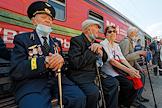 Церемония встречи агитационного поезда Министерства обороны России "Мы - армия страны, мы - армия народа", на железнодорожной станции Томск-1. Ветераны во время церемонии.
