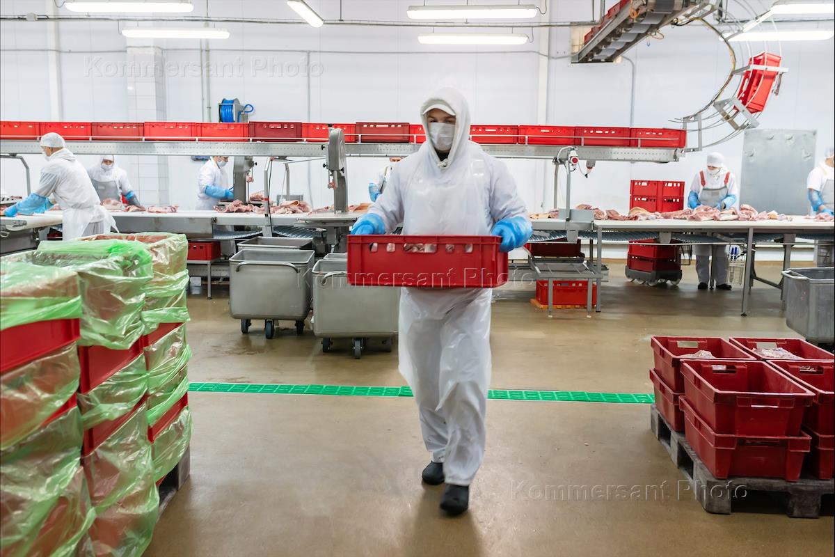 Жанровая фотография. Работа мясоперерабатывающего завода. Производство изделий из мяса свинины.