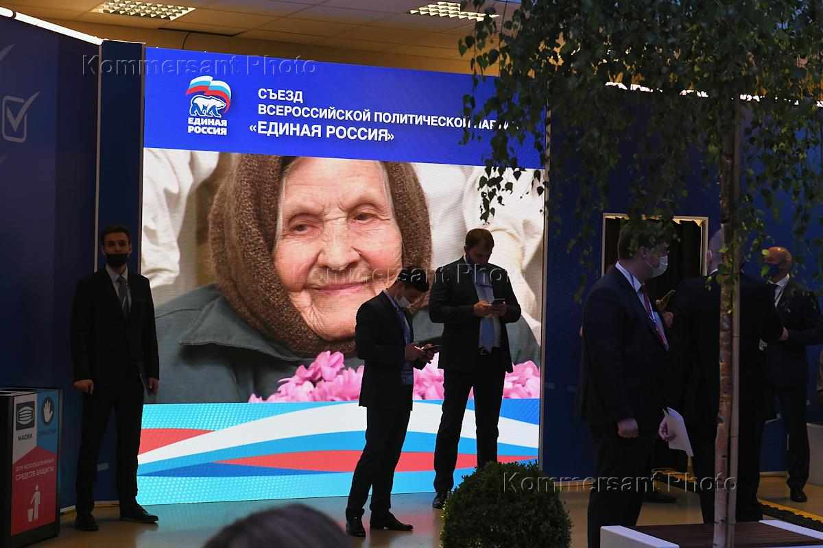 XX Congress of the United Russia party at the Expocentre Central Exhibition Complex. Genre photography.