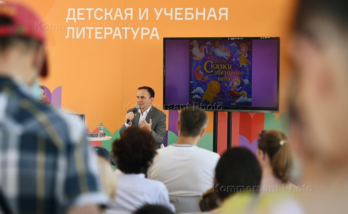 VII Red Square annual book festival. Cosmonaut Sergei Ryazansky meeting with readers.