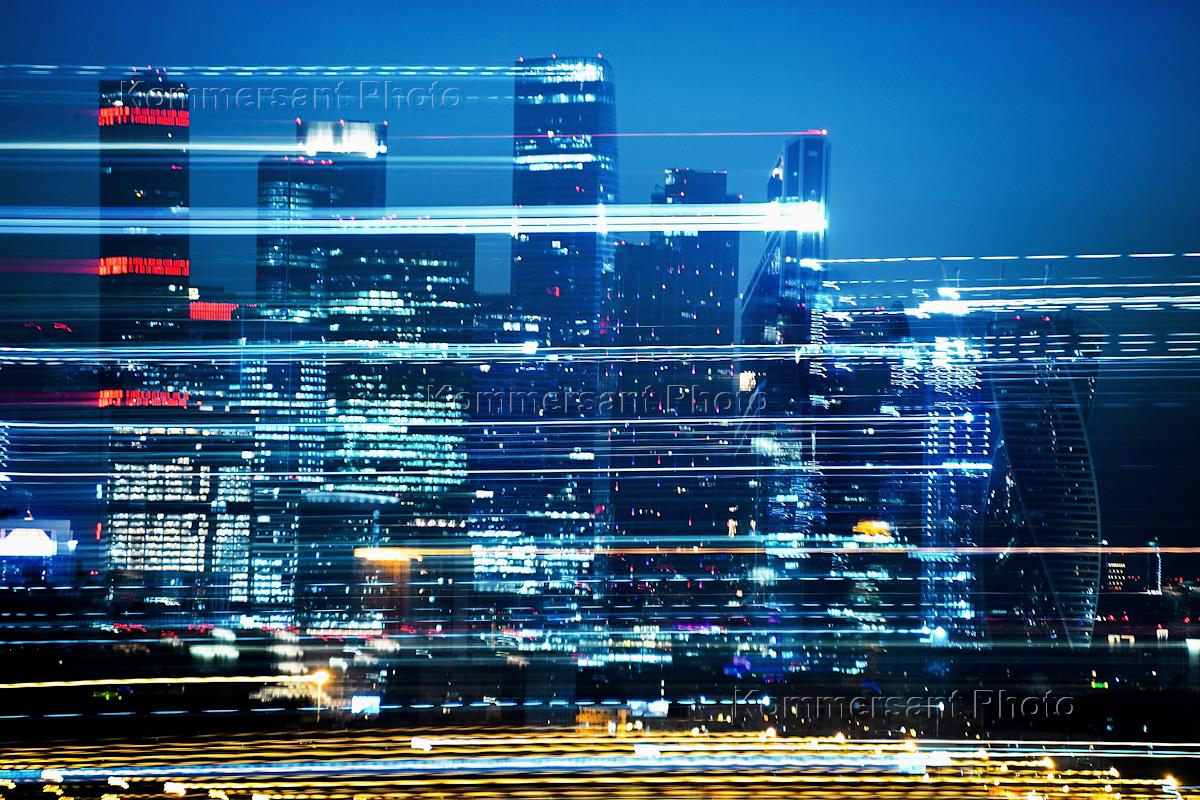 Night views of Moscow. Moscow City International Business Center.