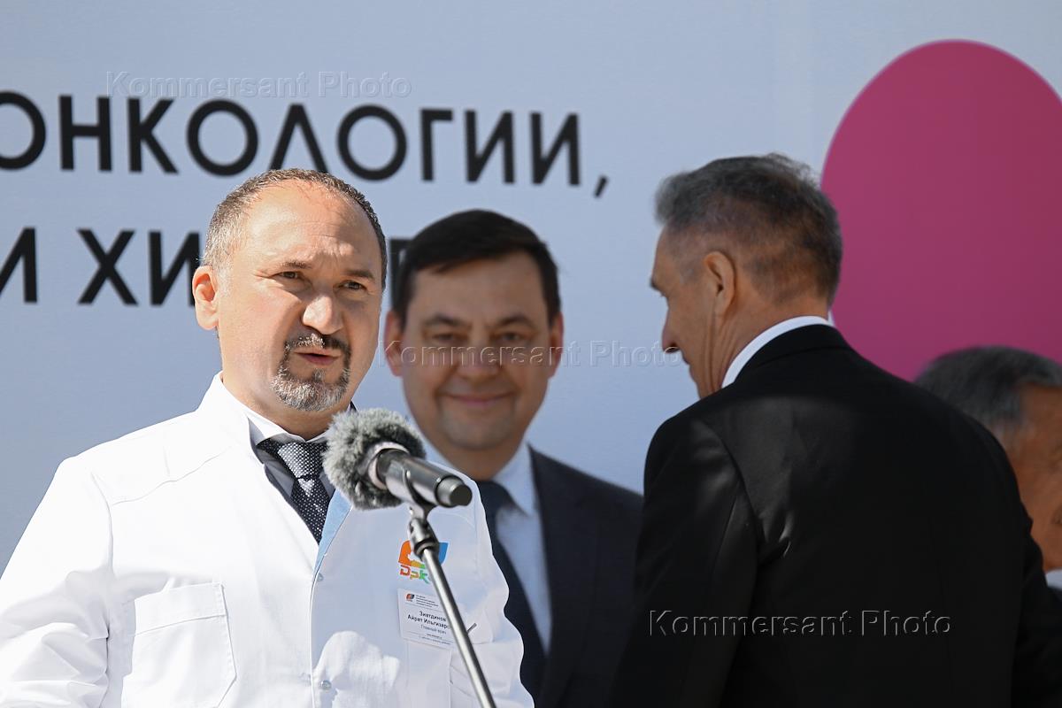 Церемония открытия Центра детской онкологии, гематологии и хирургии на базе Детской республиканской клинической больницы (ДРКБ) в Казани. Главный врач ДРКБ Айрат Зиатдинов (слева) во время церемонии.