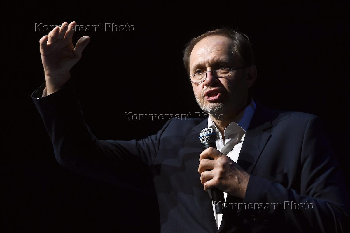 Awarding ceremony for the winners of the Russian television competition TEFI-Chronicle of Victory at the Moscow Et Cetera Theater. Producer Alexander Golutva during the ceremony.