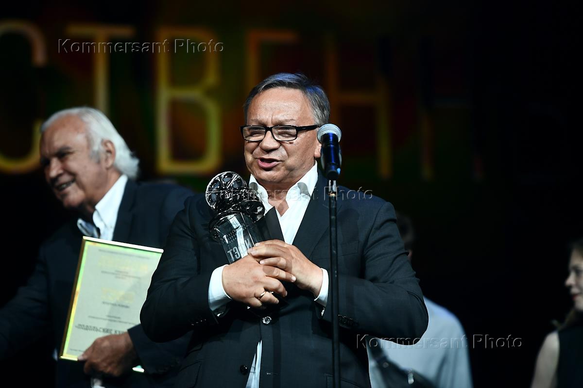 Awarding ceremony for the winners of the Russian television competition TEFI-Chronicle of Victory at the Moscow Et Cetera Theater. Actor Andrei Rudensky during the ceremony.