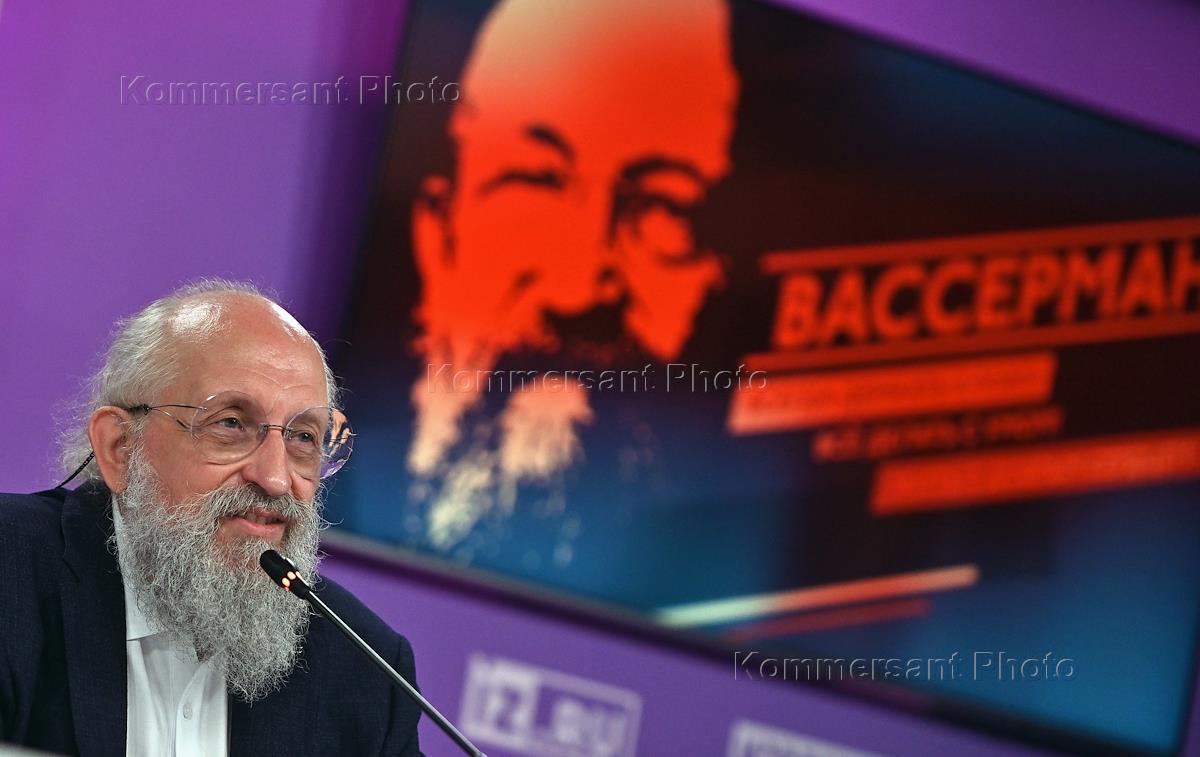 Political consultant Anatoly Wasserman at a press conference at the Izvestia MIC press center.