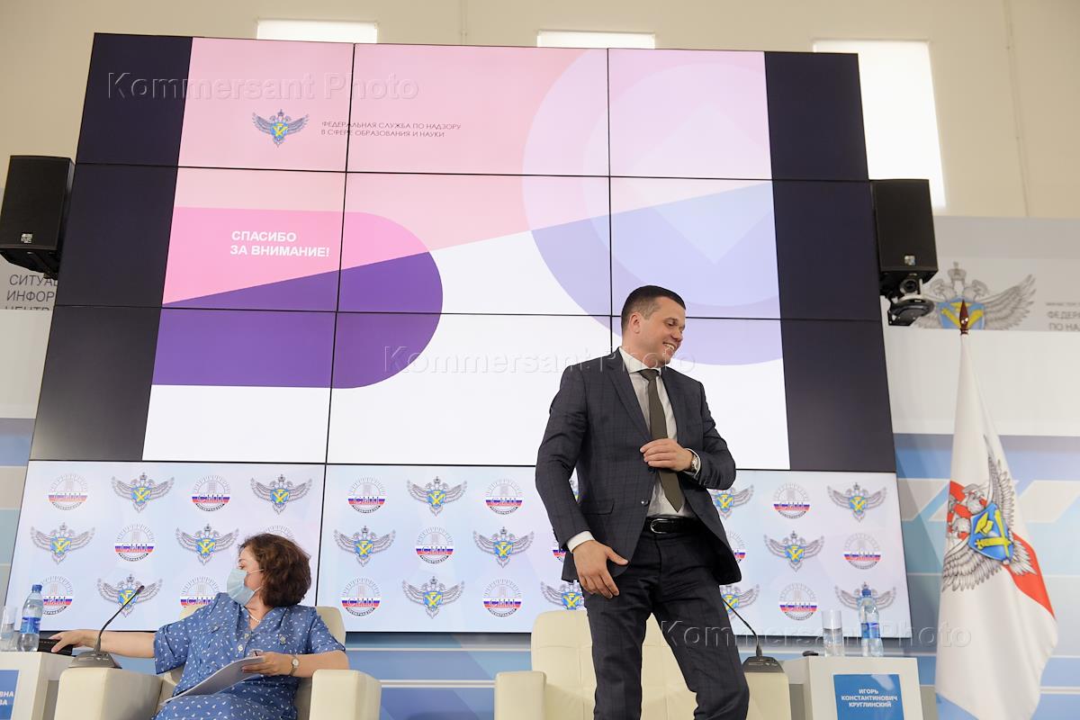 The ceremony of announcing preliminary results in the USE subjects at the Situation and Information Center (SIC) of the Federal Service for Supervision of Education and Science (Rosobrnadzor). Deputy Head of Rosobrnadzor Igor Kruglinsky during the ceremony.