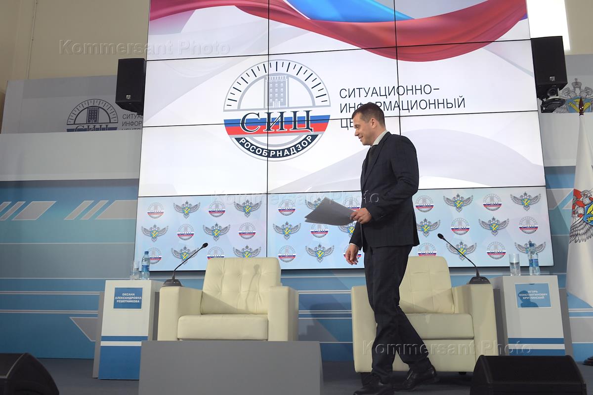 The ceremony of announcing preliminary results in the USE subjects at the Situation and Information Center (SIC) of the Federal Service for Supervision of Education and Science (Rosobrnadzor). Deputy Head of Rosobrnadzor Igor Kruglinsky during the ceremony.