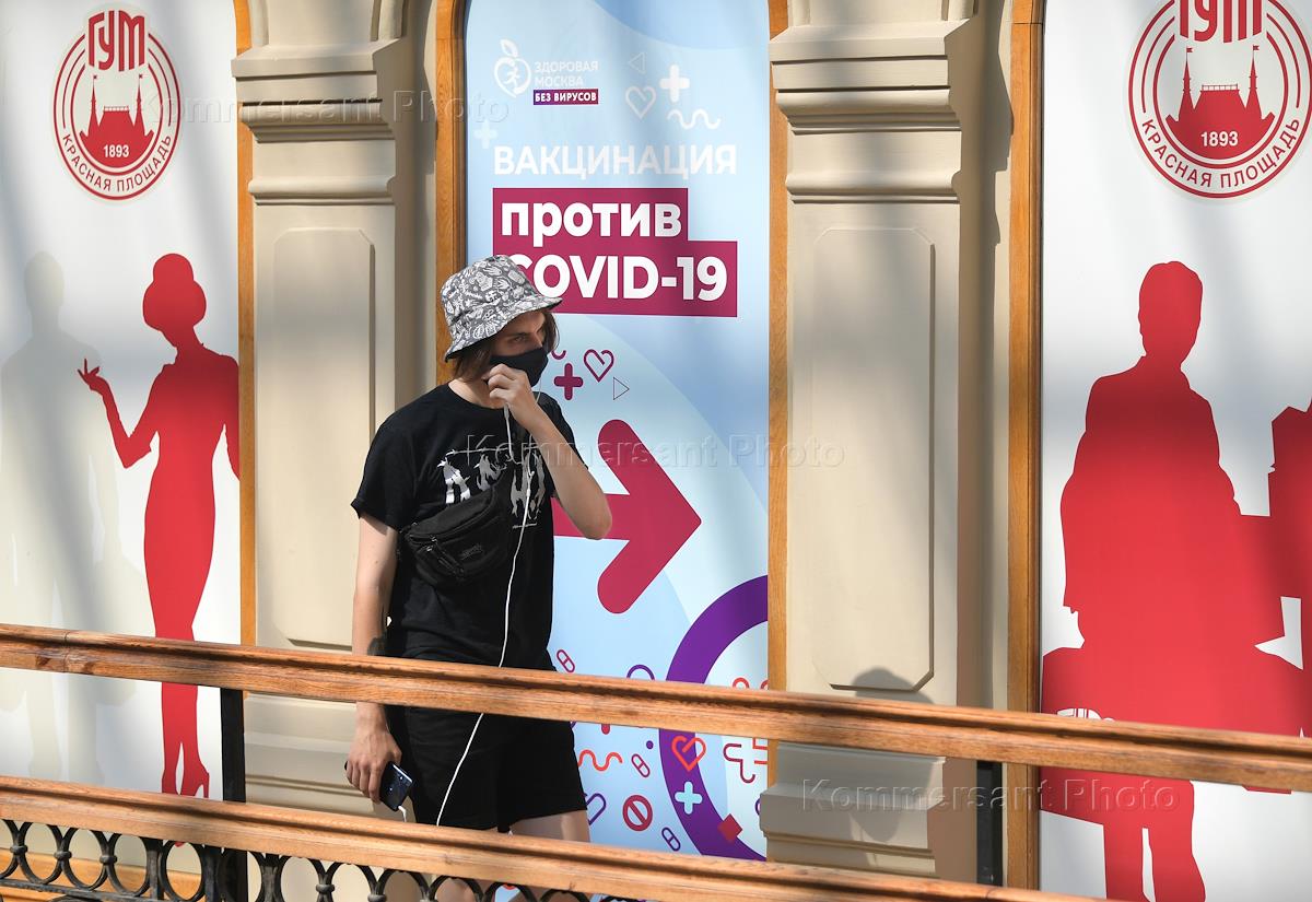 Moscow during the restrictive measures introduced in the city from June 13, 2021 due to the spread of the coronavirus infection COVID-19. Genre photography. The coronavirus vaccination station at the General Department Store (GUM).
