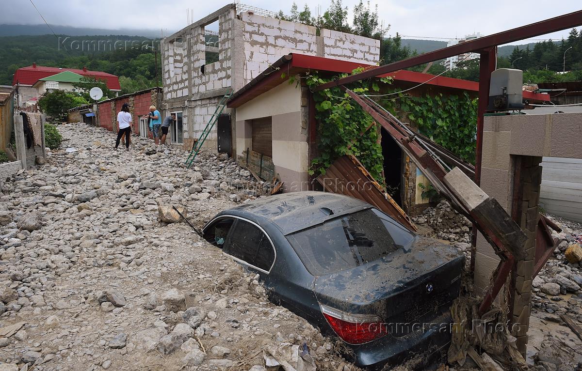The aftermath of flooding due to heavy rains that caused flooding of houses in the village of Vasilyevka, Yalta region.