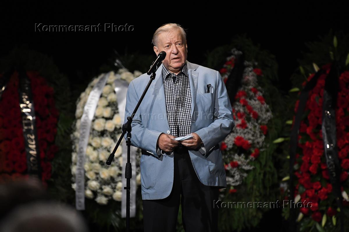 Farewell ceremony to General Director of Public Television of Russia (OTR) Anatoly Lysenko at the Ostankino television center. Journalist and TV presenter Leonid Mlechin at the farewell ceremony.