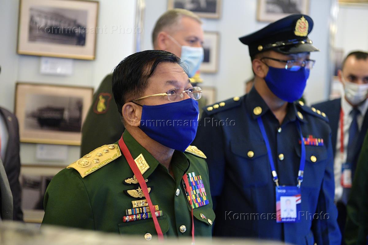 IX Moscow Conference on International Security MCIS-2021, organized by the Russian Ministry of Defense, in the congress park of the Ukraine Hotel (Radisson Collection Hotel). The Commander-in-Chief of the Armed Forces of Myanmar Min Aung Hlaing during a conference.