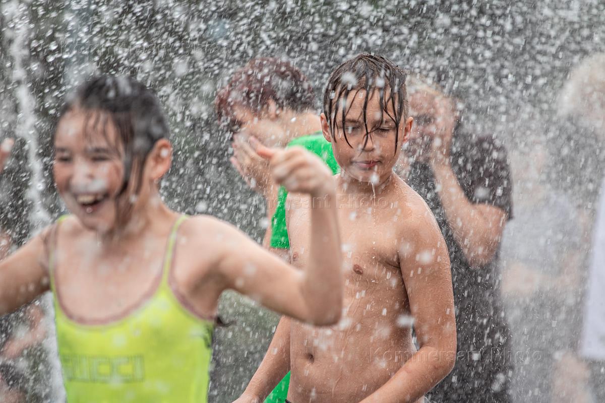 Abnormal heat in St. Petersburg. Vacationers bathe in the fountain of the Park named after the 300th anniversary of St. Petersburg.