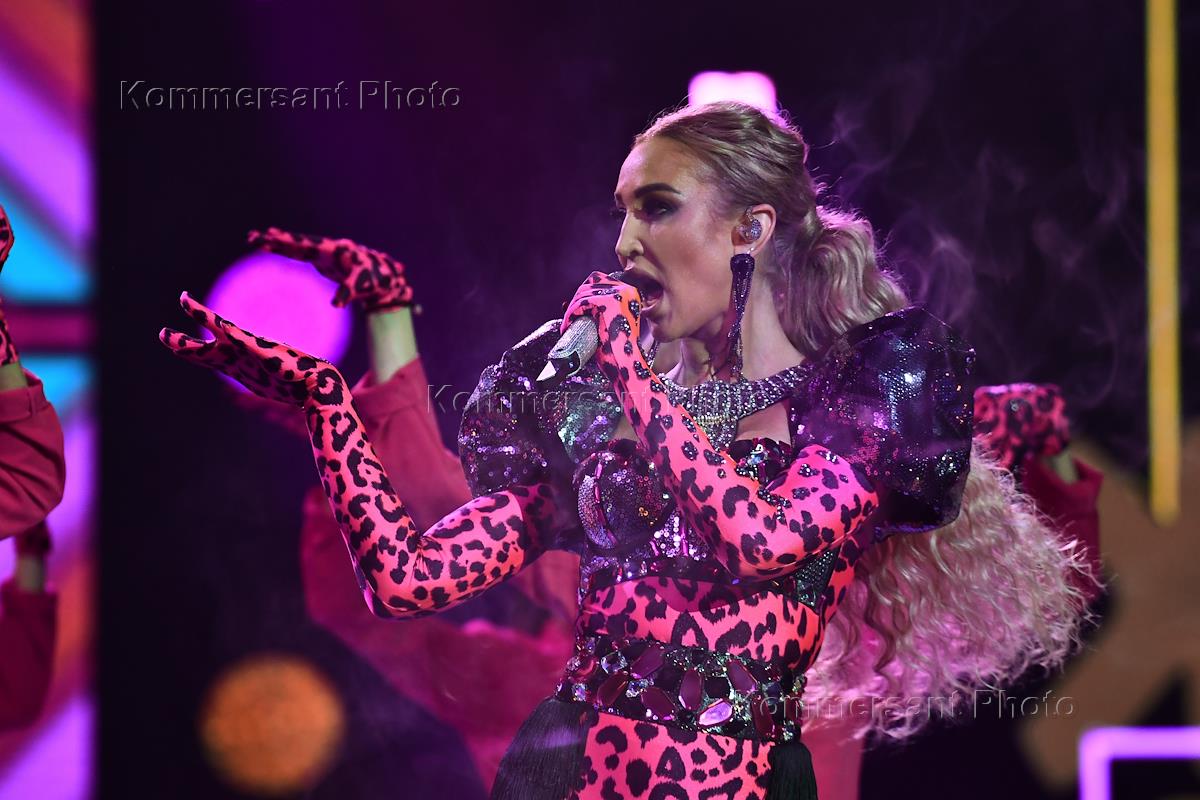 Zhara International Music Festival at the Crocus City Hall. Singer Klava Koka (Klavdia Vysokova) performing at the festival.