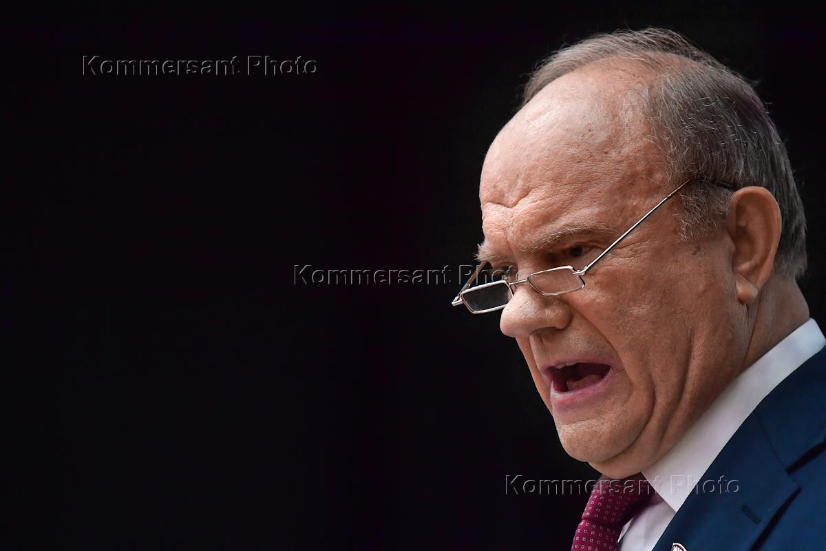 Предвыборный съезд Коммунистической партии Российской Федерации (КПРФ) в оздоровительном комплексе "Снегири". Лидер КПРФ, член комитета Государственной думы России по делам Содружества Независимых Государств, евразийской интеграции и связям с соотечественниками Геннадий Зюганов во время выступления на съезде.
